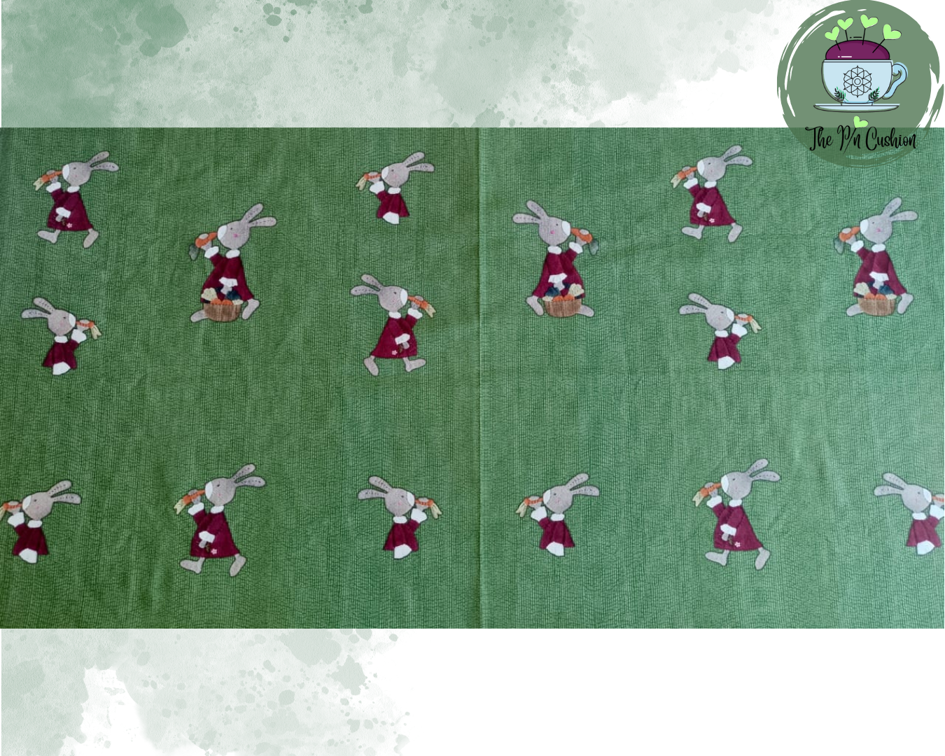 This utterly charming print features the sweetest little bunnies, all dressed up in their finest outfits. Each bunny is illustrated to look like a delicate appliqué, giving the fabric a soft, handcrafted feel that’s full of personality.